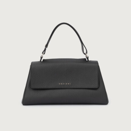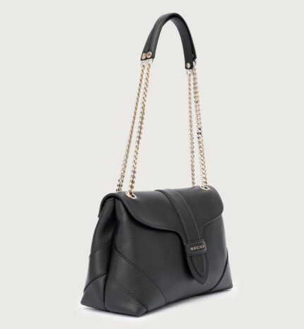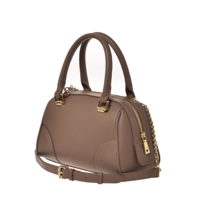 in vera pelle, con polsiera e tracolla regolabile e removibile. Tasca frontale esterna e