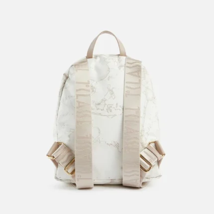 Trolley in tessuto stampato con cartina geografica Geo Classic, con tasca frontale aperta, tasca esterna chiusa con zip, due manici, ruote girevoli, sistema di traino telescopico, tre scomparti interni. Ideale per lunghi viaggi grazie alla capienza e alla comodità di trasporto.